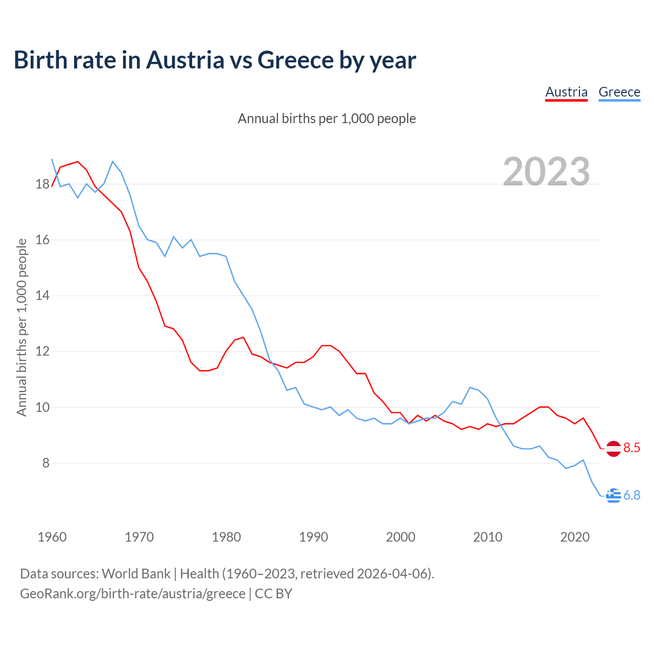 GeoRank.org/birth-rate/austria/greece | CC BY