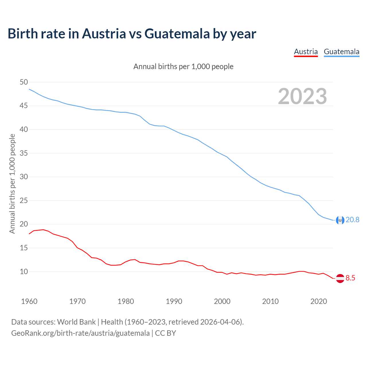 GeoRank.org/birth-rate/austria/guatemala | CC BY