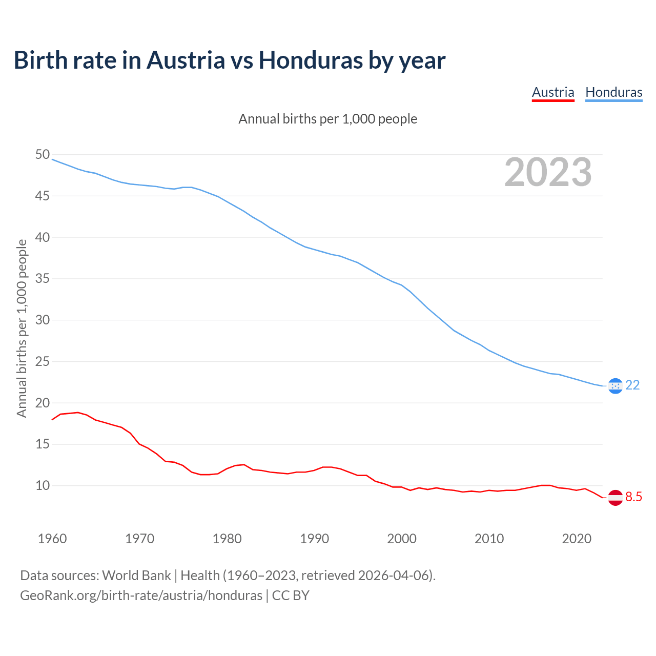 GeoRank.org/birth-rate/austria/honduras | CC BY