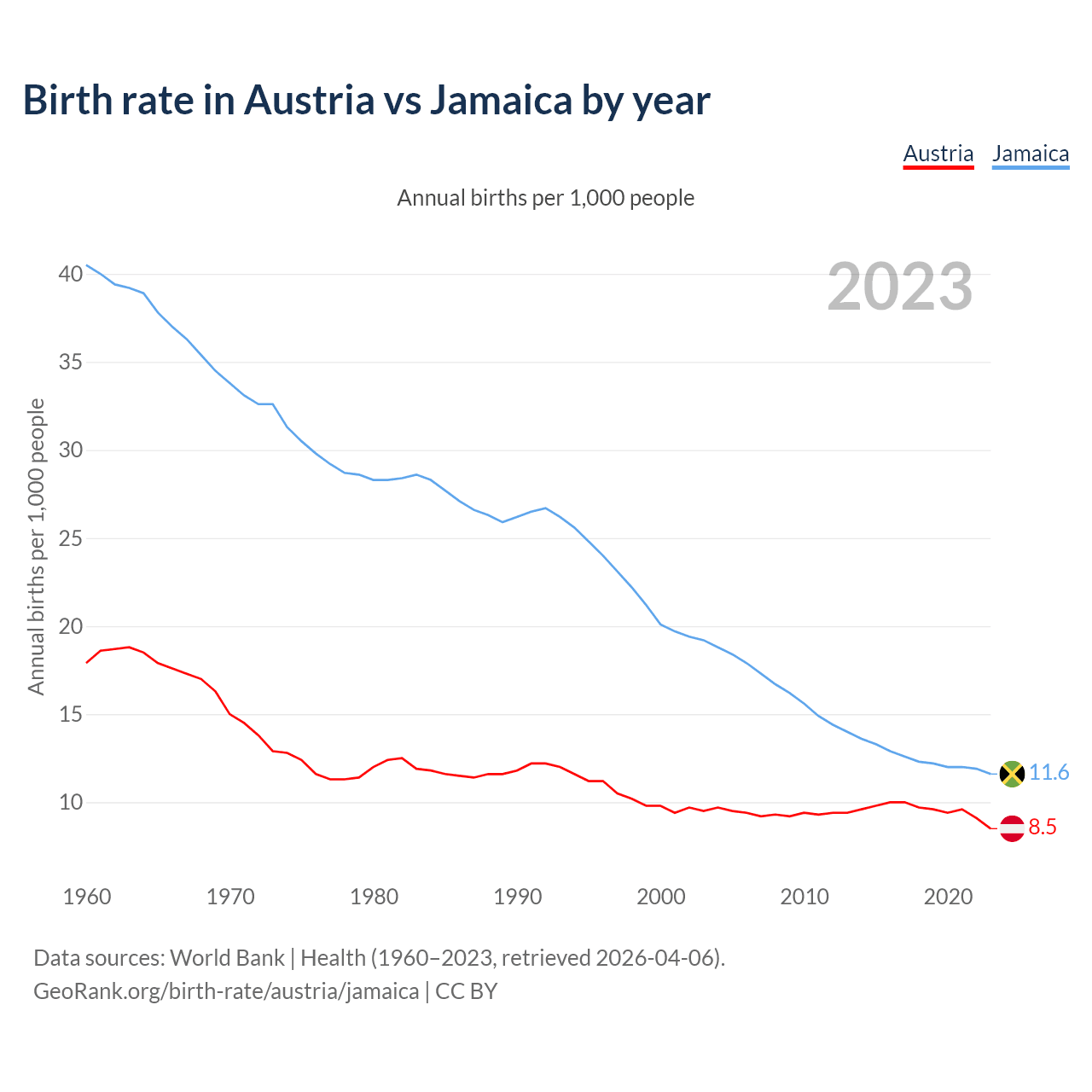 GeoRank.org/birth-rate/austria/jamaica | CC BY