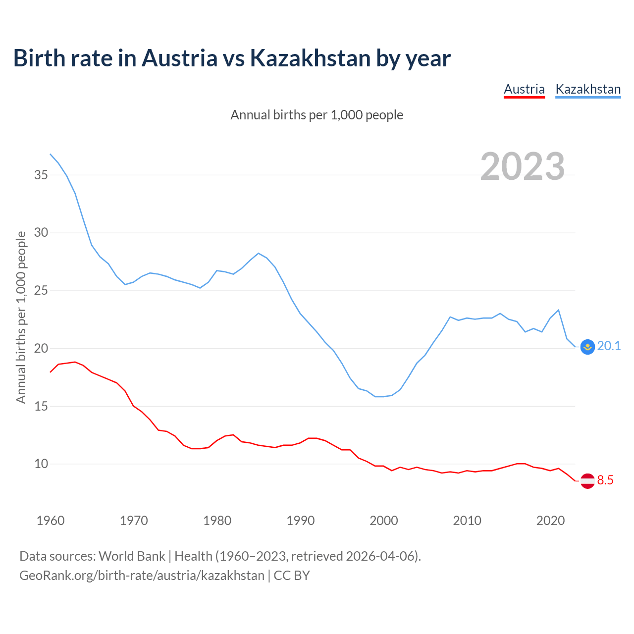 GeoRank.org/birth-rate/austria/kazakhstan | CC BY