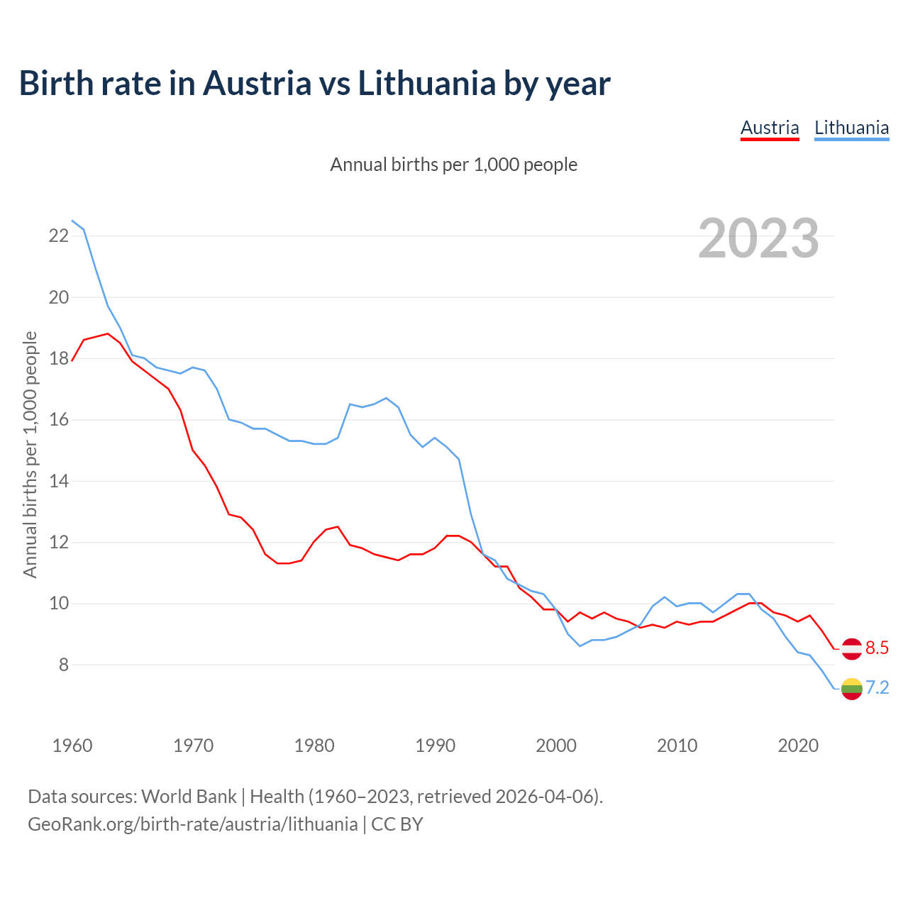 GeoRank.org/birth-rate/austria/lithuania | CC BY