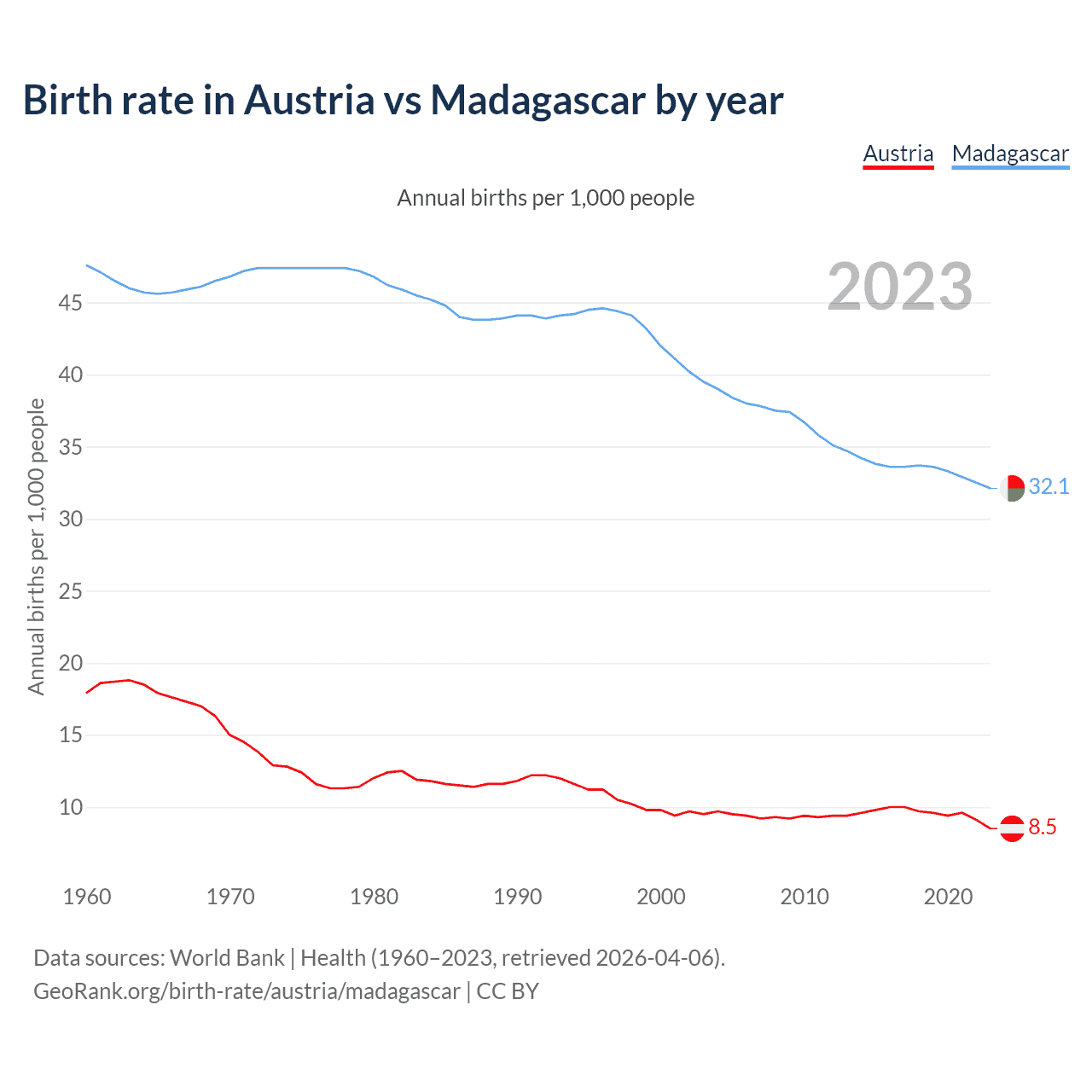 GeoRank.org/birth-rate/austria/madagascar | CC BY