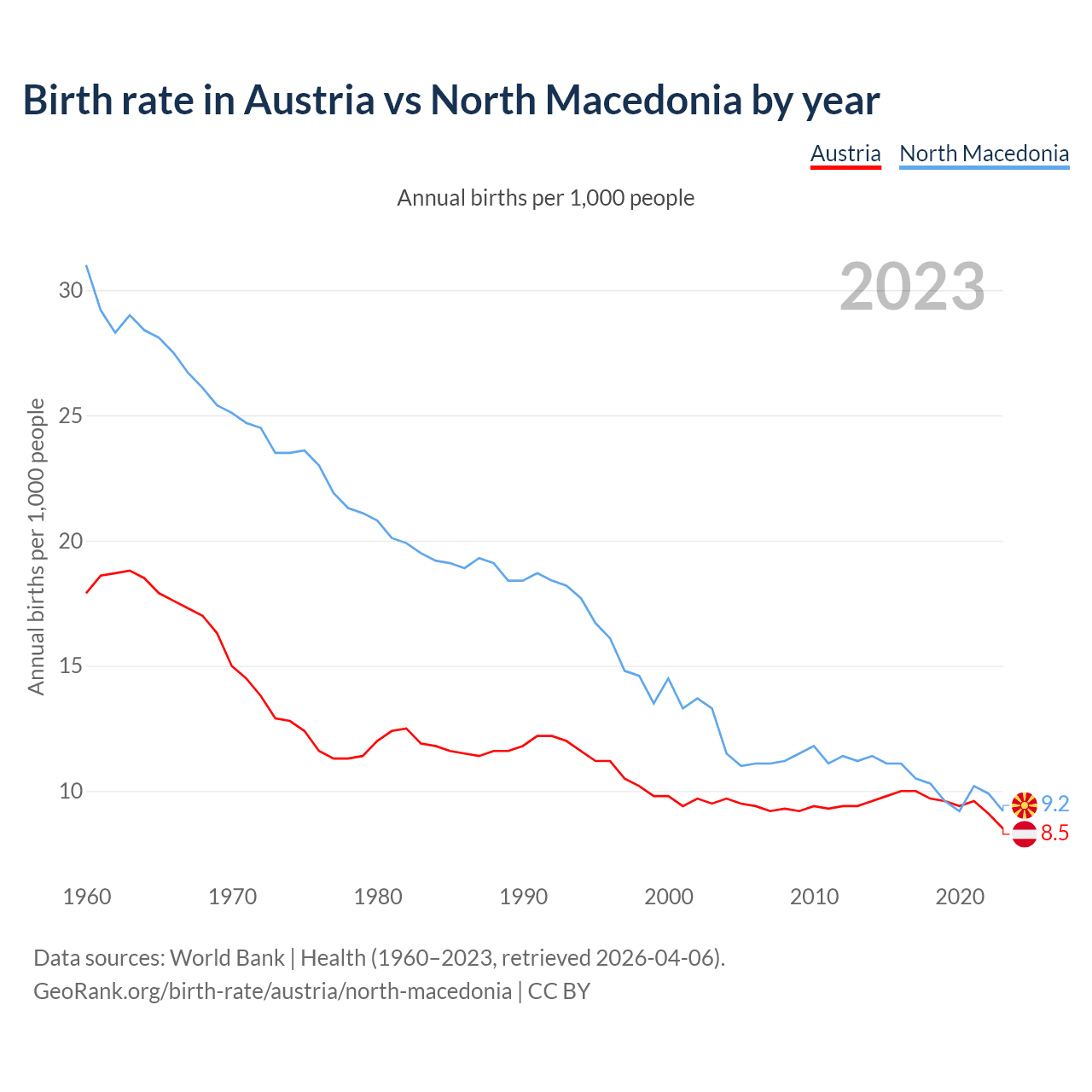 GeoRank.org/birth-rate/austria/north-macedonia | CC BY