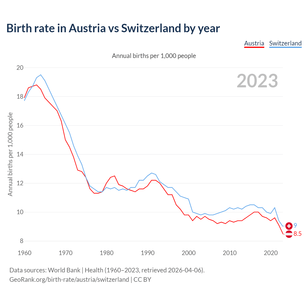 GeoRank.org/birth-rate/austria/switzerland | CC BY
