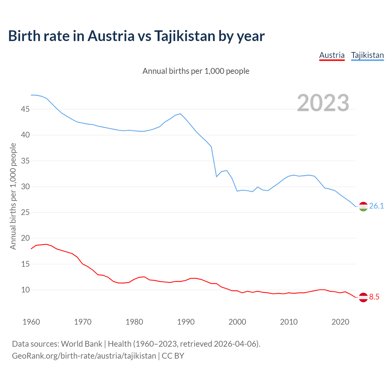 GeoRank.org/birth-rate/austria/tajikistan | CC BY