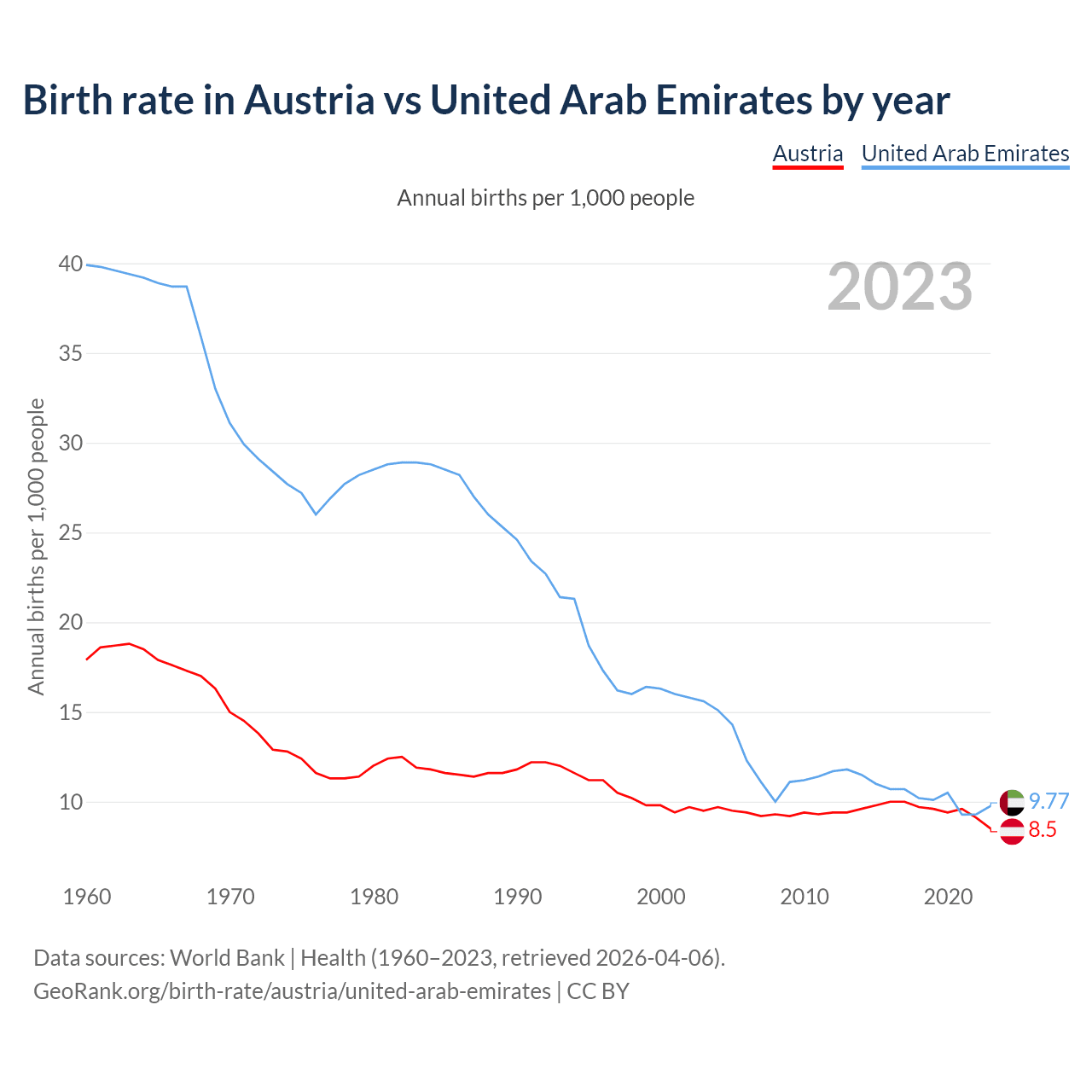 GeoRank.org/birth-rate/austria/united-arab-emirates | CC BY