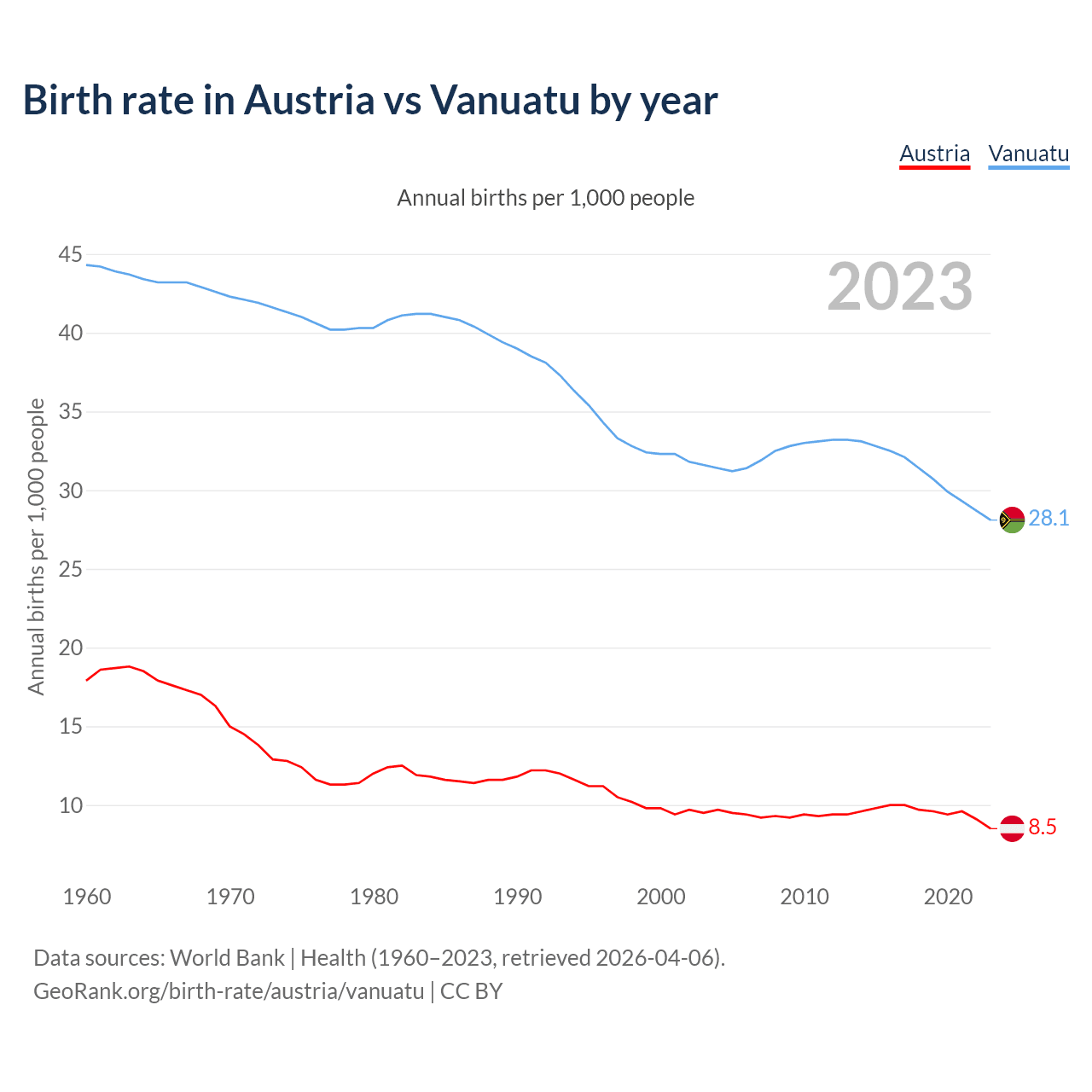 GeoRank.org/birth-rate/austria/vanuatu | CC BY