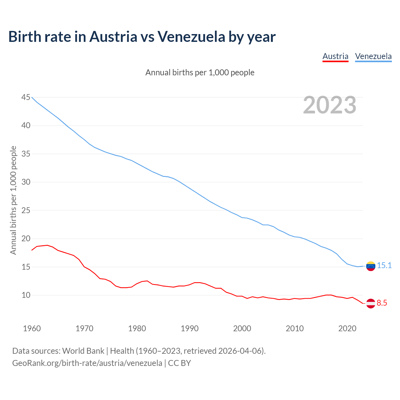 GeoRank.org/birth-rate/austria/venezuela | CC BY