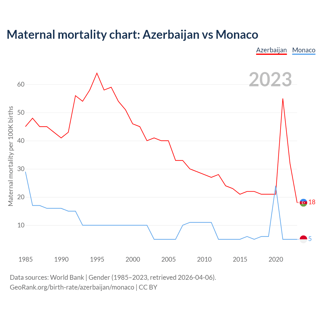 Maternal mortality chart: Azerbaijan vs Monaco