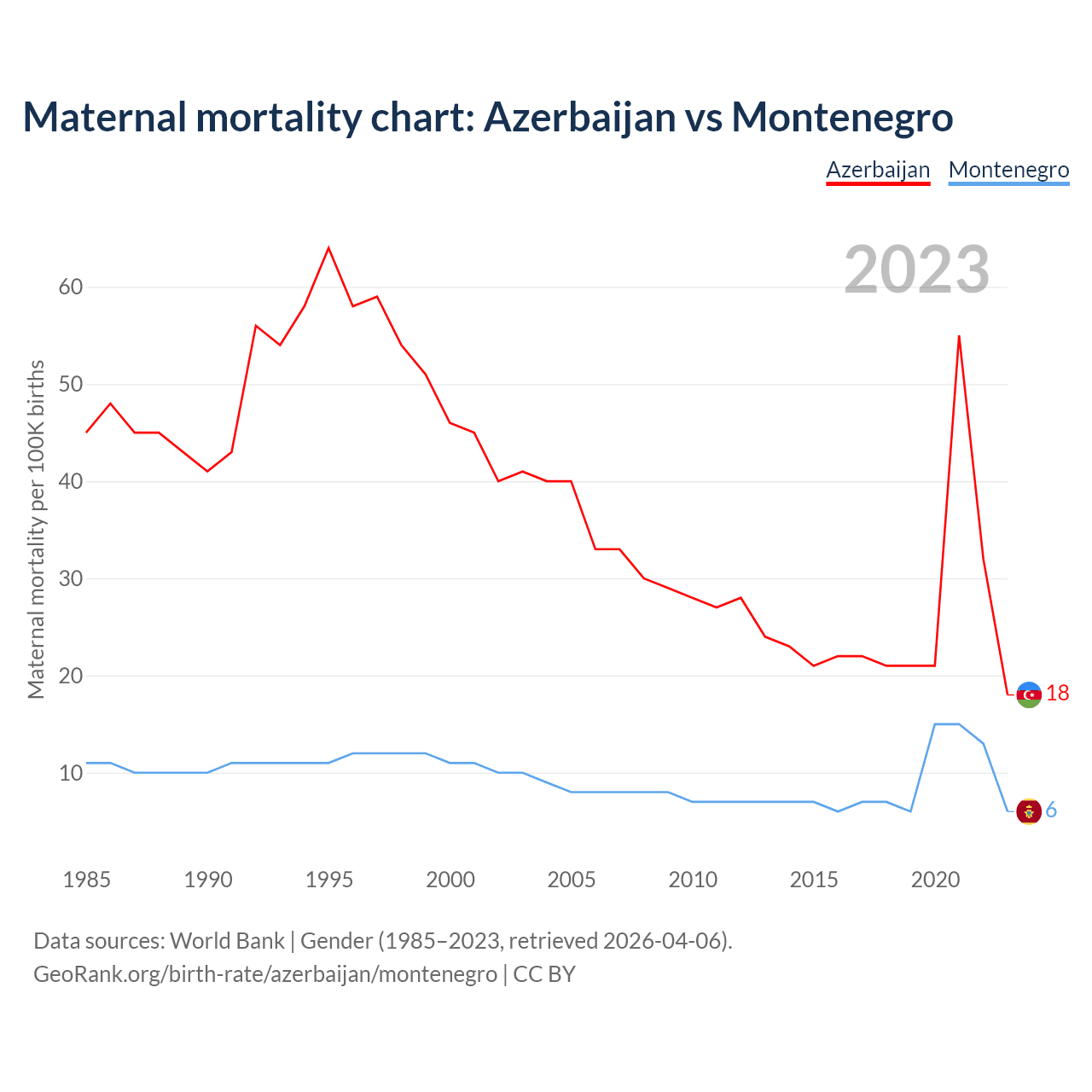 Maternal mortality chart: Azerbaijan vs Montenegro