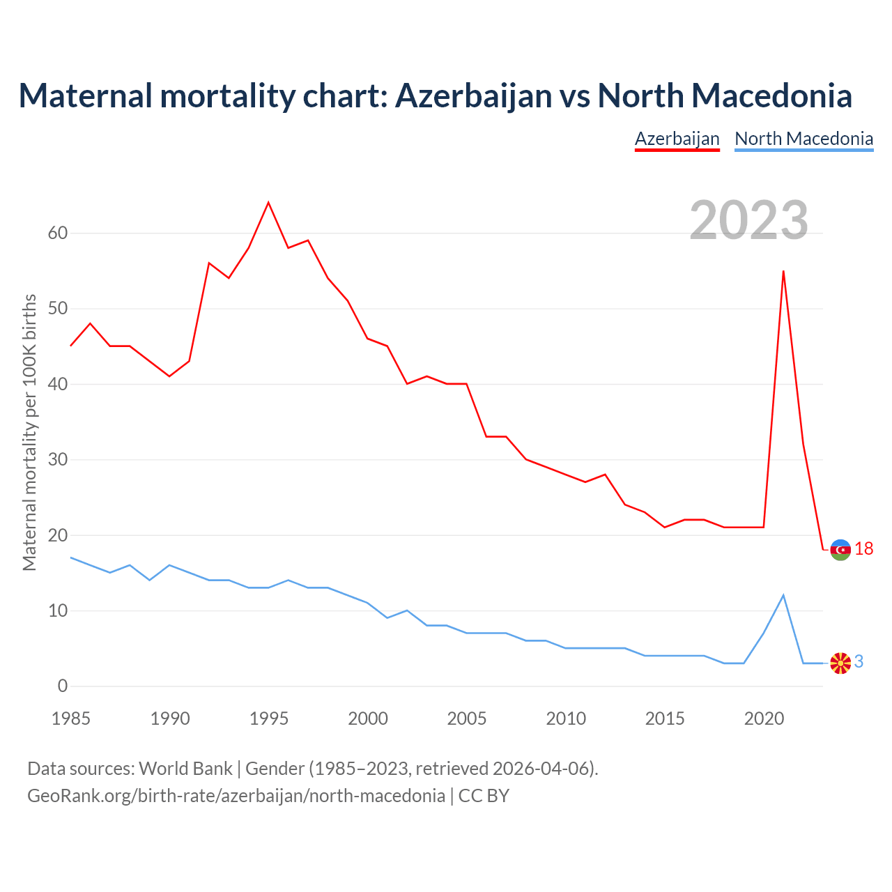 Maternal mortality chart: Azerbaijan vs North Macedonia