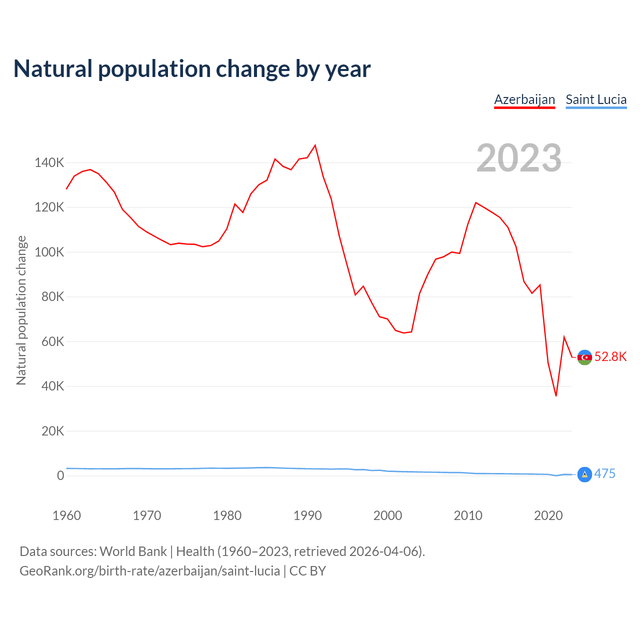 - Azerbaijan is ranked 128/196 by birth rate compared to 123/196 for Saint Lucia.