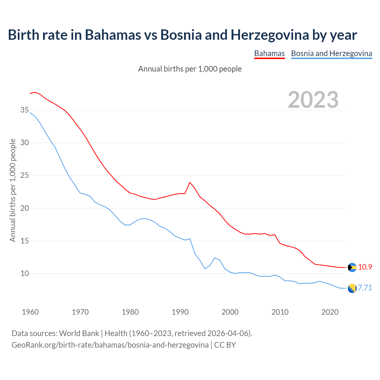 GeoRank.org/birth-rate/bahamas/bosnia-and-herzegovina | CC BY