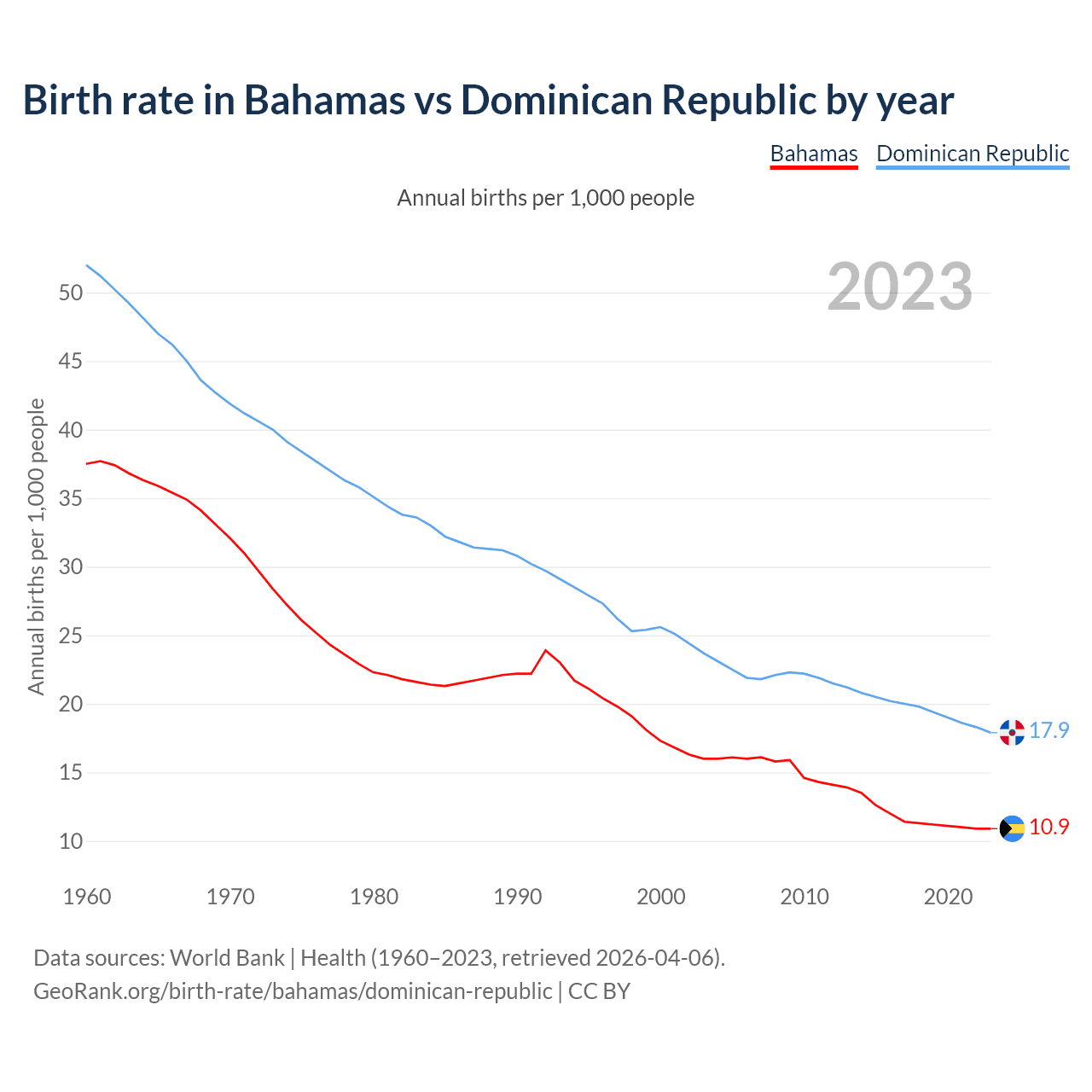GeoRank.org/birth-rate/bahamas/dominican-republic | CC BY