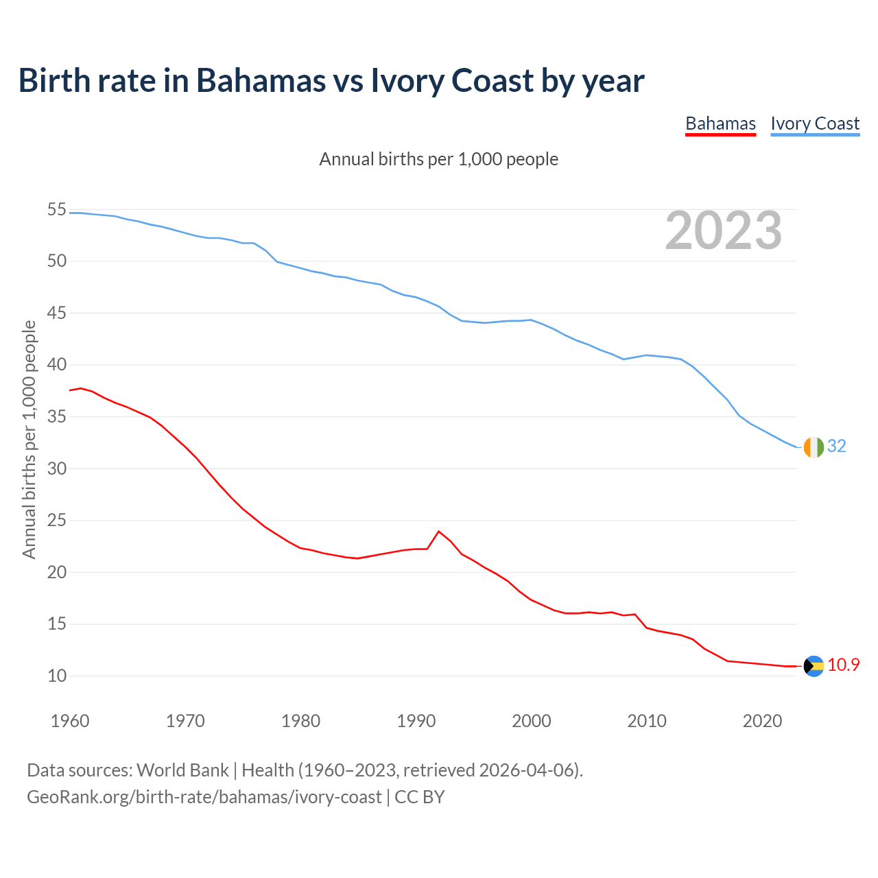 GeoRank.org/birth-rate/bahamas/ivory-coast | CC BY