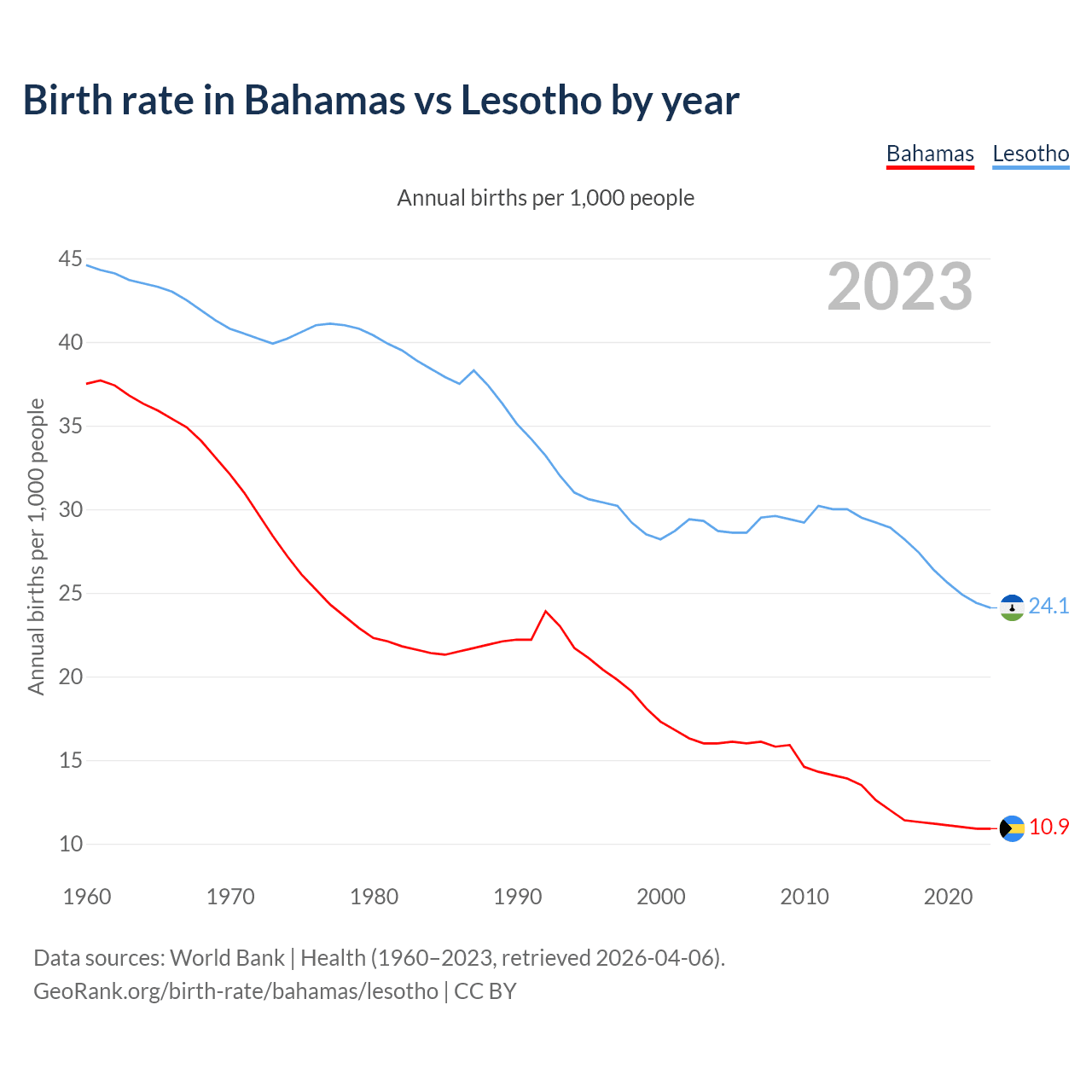 GeoRank.org/birth-rate/bahamas/lesotho | CC BY