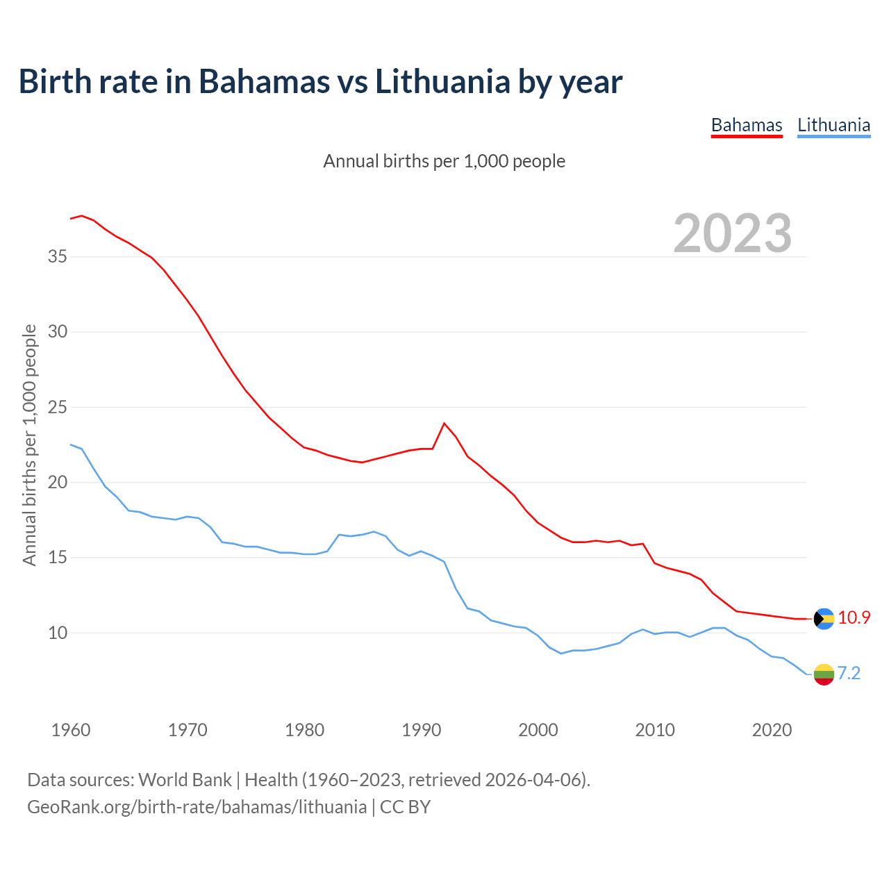 GeoRank.org/birth-rate/bahamas/lithuania | CC BY