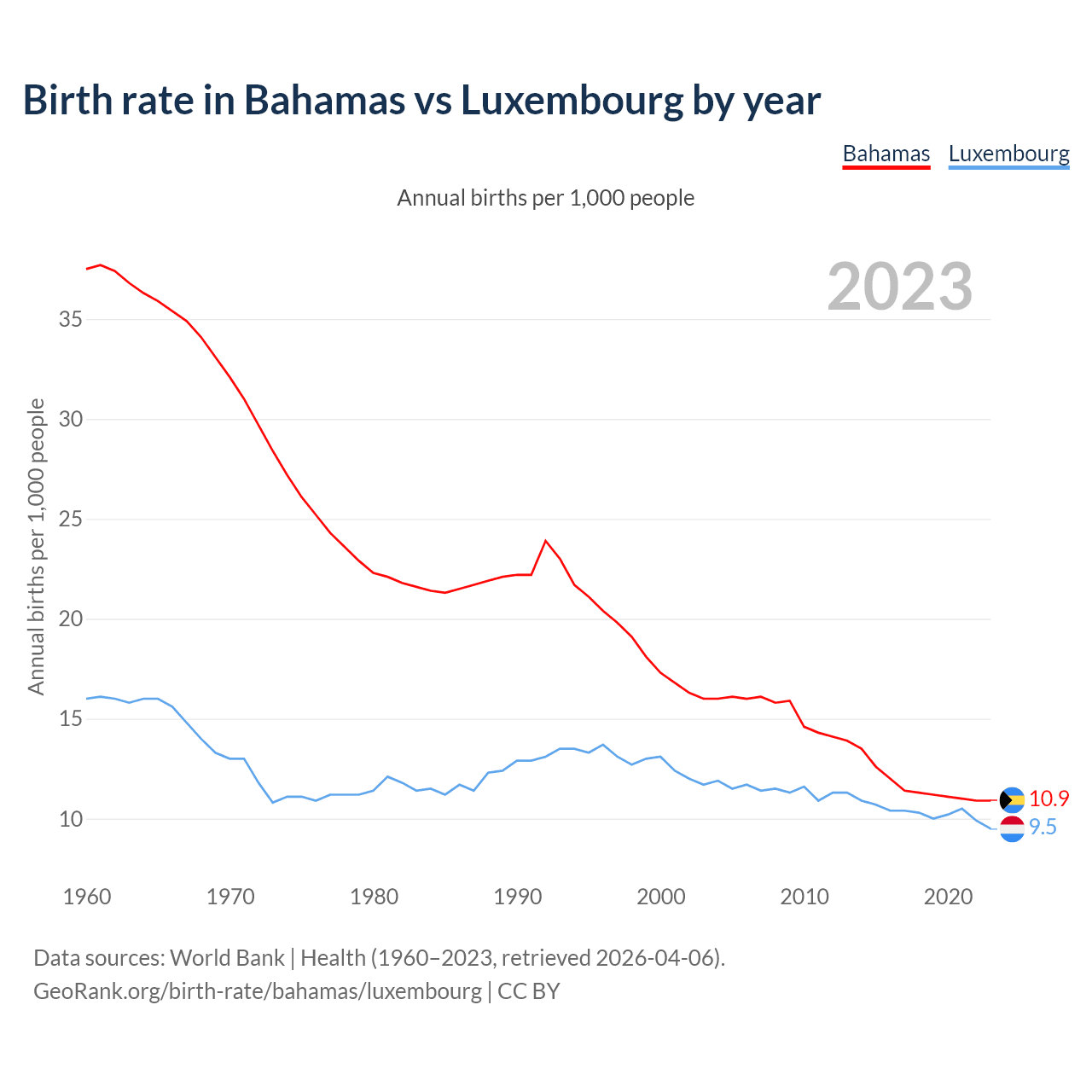 GeoRank.org/birth-rate/bahamas/luxembourg | CC BY