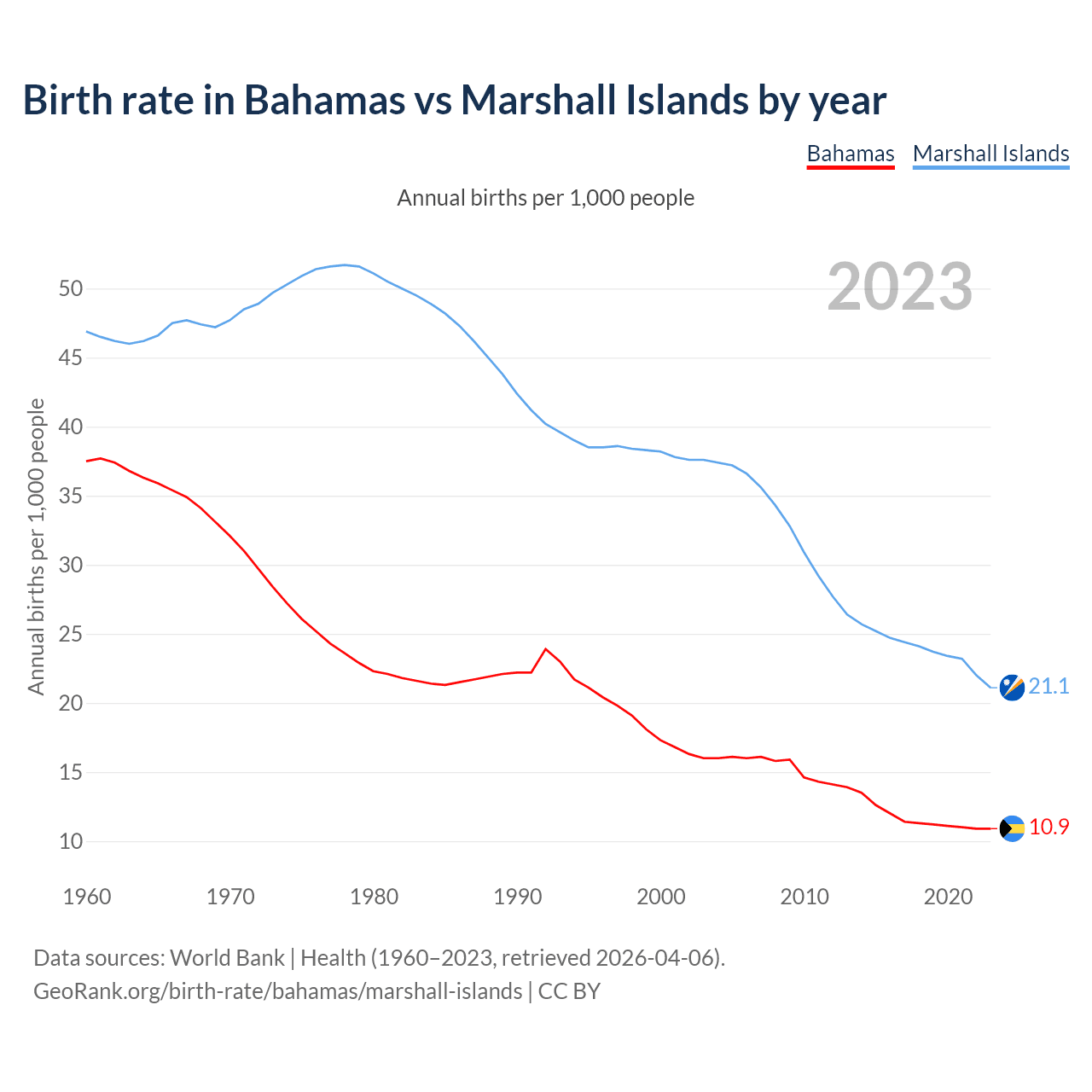 GeoRank.org/birth-rate/bahamas/marshall-islands | CC BY