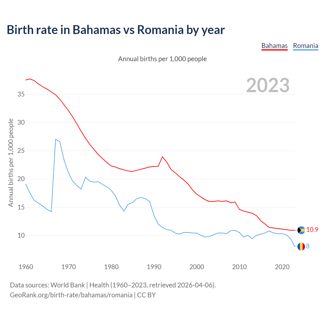 GeoRank.org/birth-rate/bahamas/romania | CC BY