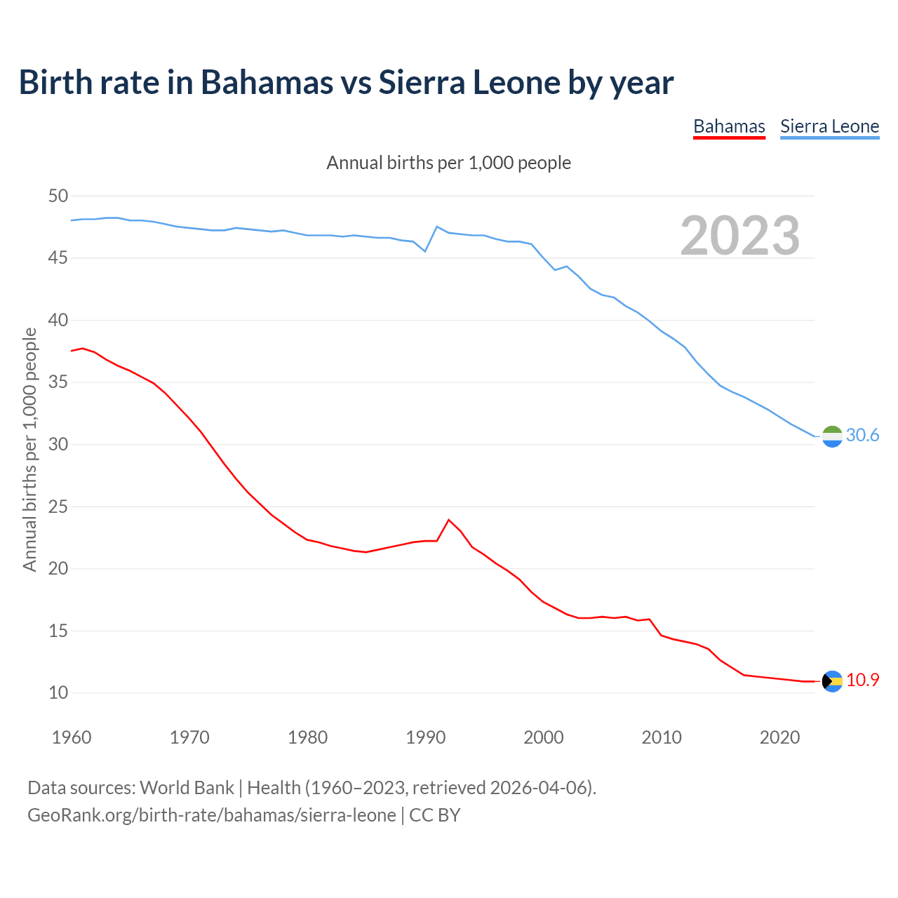 GeoRank.org/birth-rate/bahamas/sierra-leone | CC BY