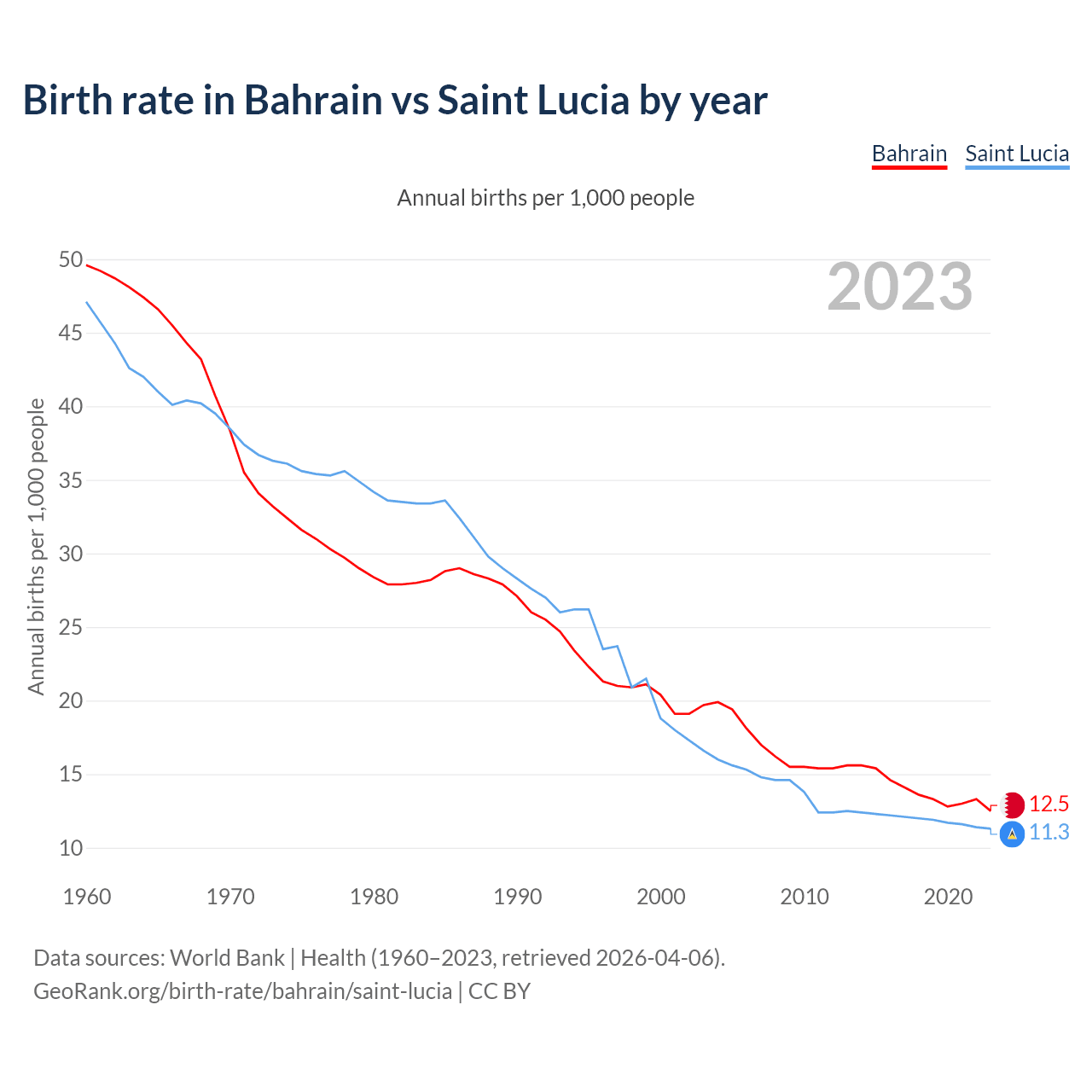 GeoRank.org/birth-rate/bahrain/saint-lucia | CC BY