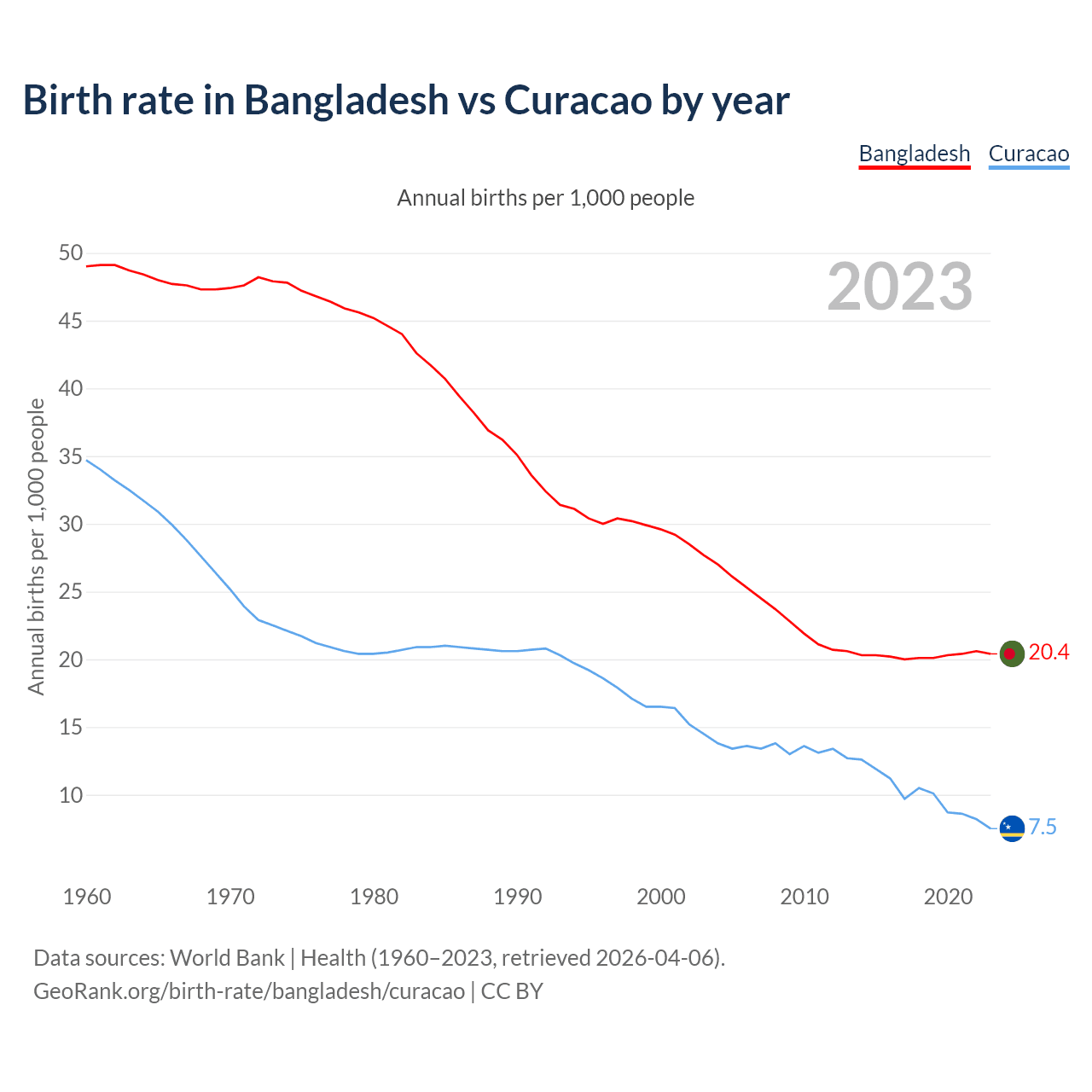 GeoRank.org/birth-rate/bangladesh/curacao | CC BY