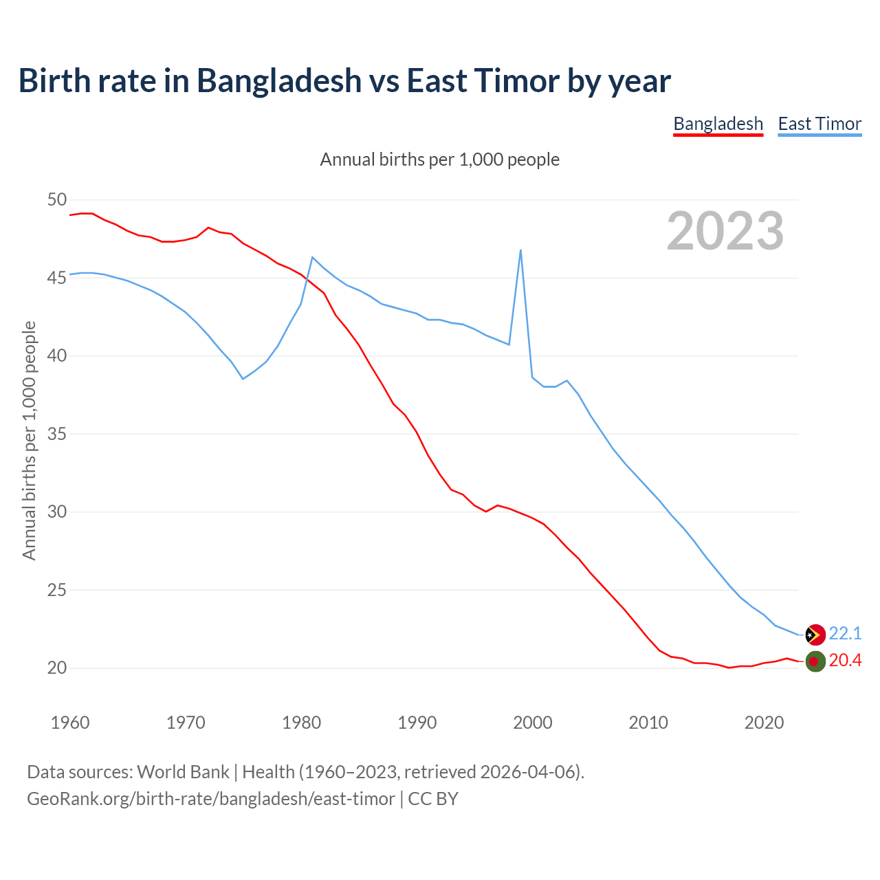 GeoRank.org/birth-rate/bangladesh/east-timor | CC BY