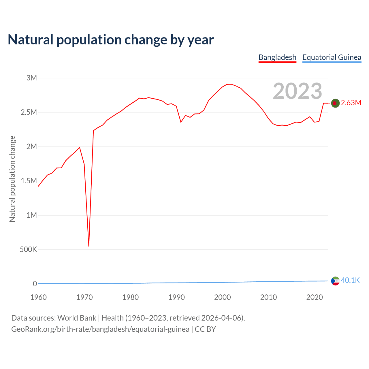 Data sources: World Bank | Health (1960–2023, retrieved 2026-04-06).