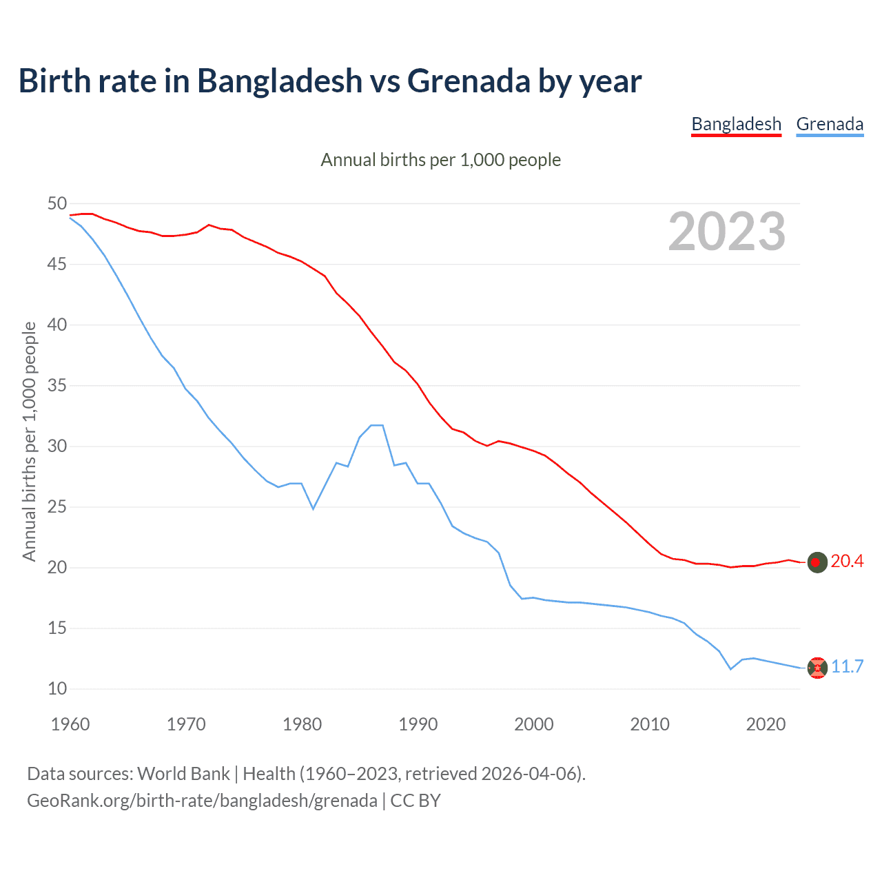 GeoRank.org/birth-rate/bangladesh/grenada | CC BY