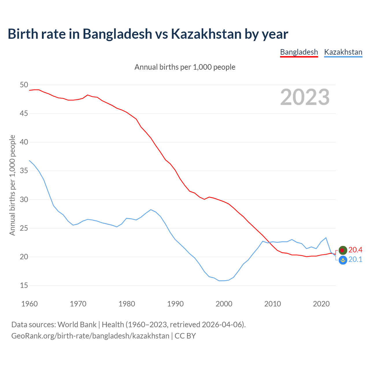 GeoRank.org/birth-rate/bangladesh/kazakhstan | CC BY
