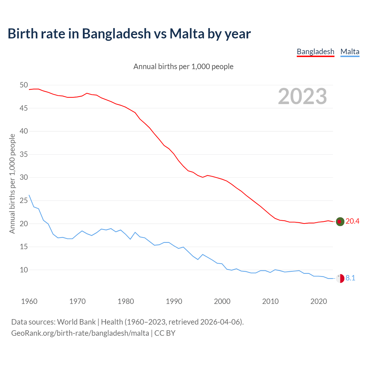 GeoRank.org/birth-rate/bangladesh/malta | CC BY