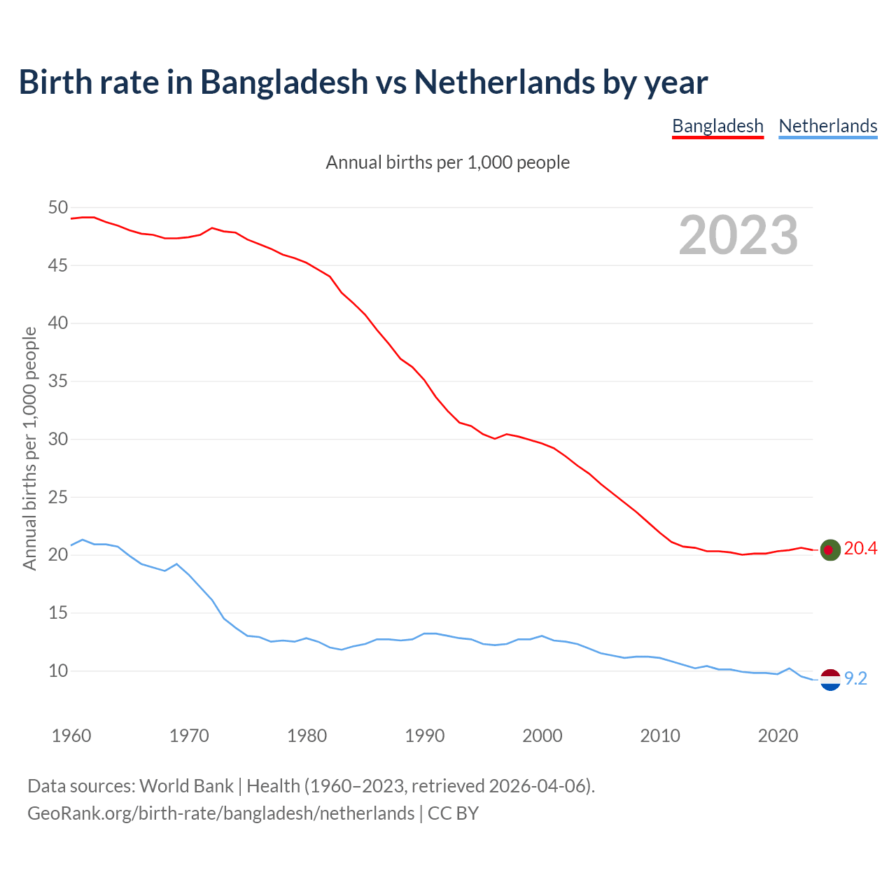 GeoRank.org/birth-rate/bangladesh/netherlands | CC BY