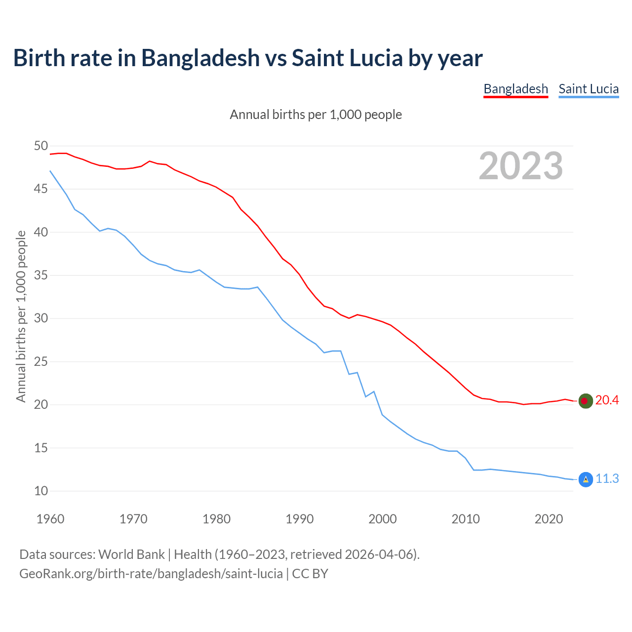 GeoRank.org/birth-rate/bangladesh/saint-lucia | CC BY
