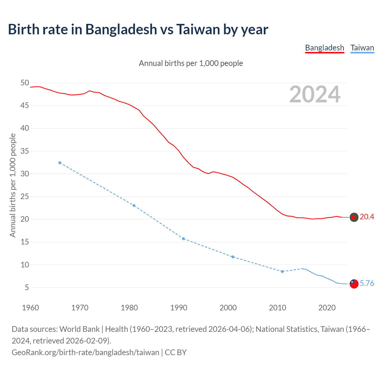 GeoRank.org/birth-rate/bangladesh/taiwan | CC BY