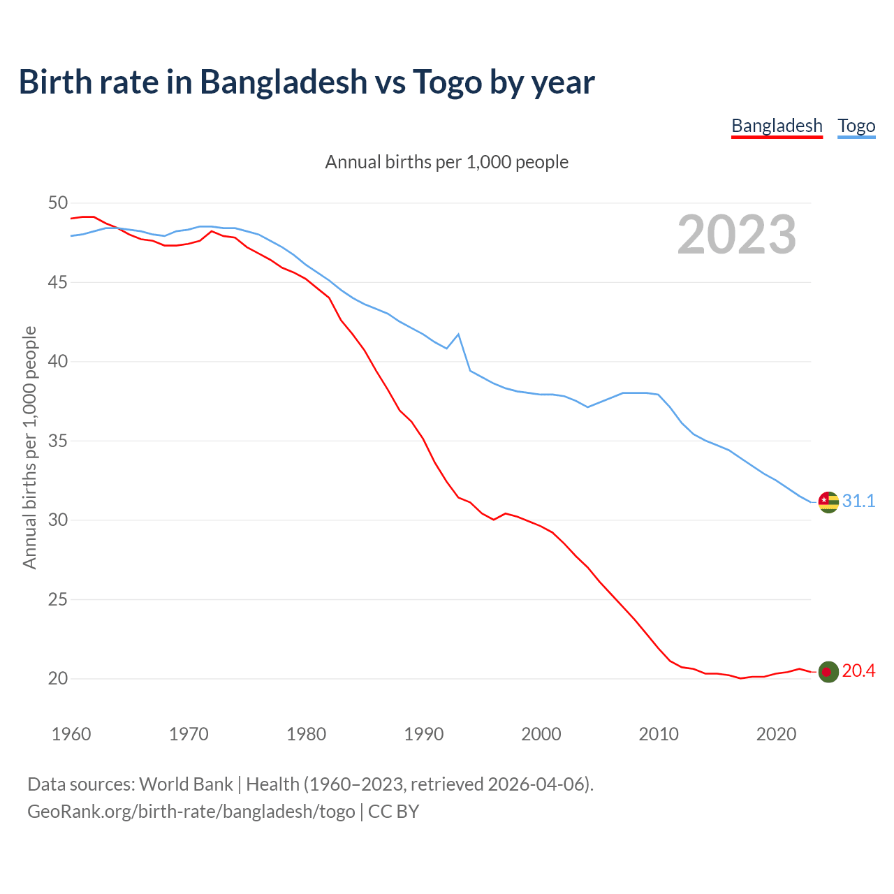 GeoRank.org/birth-rate/bangladesh/togo | CC BY