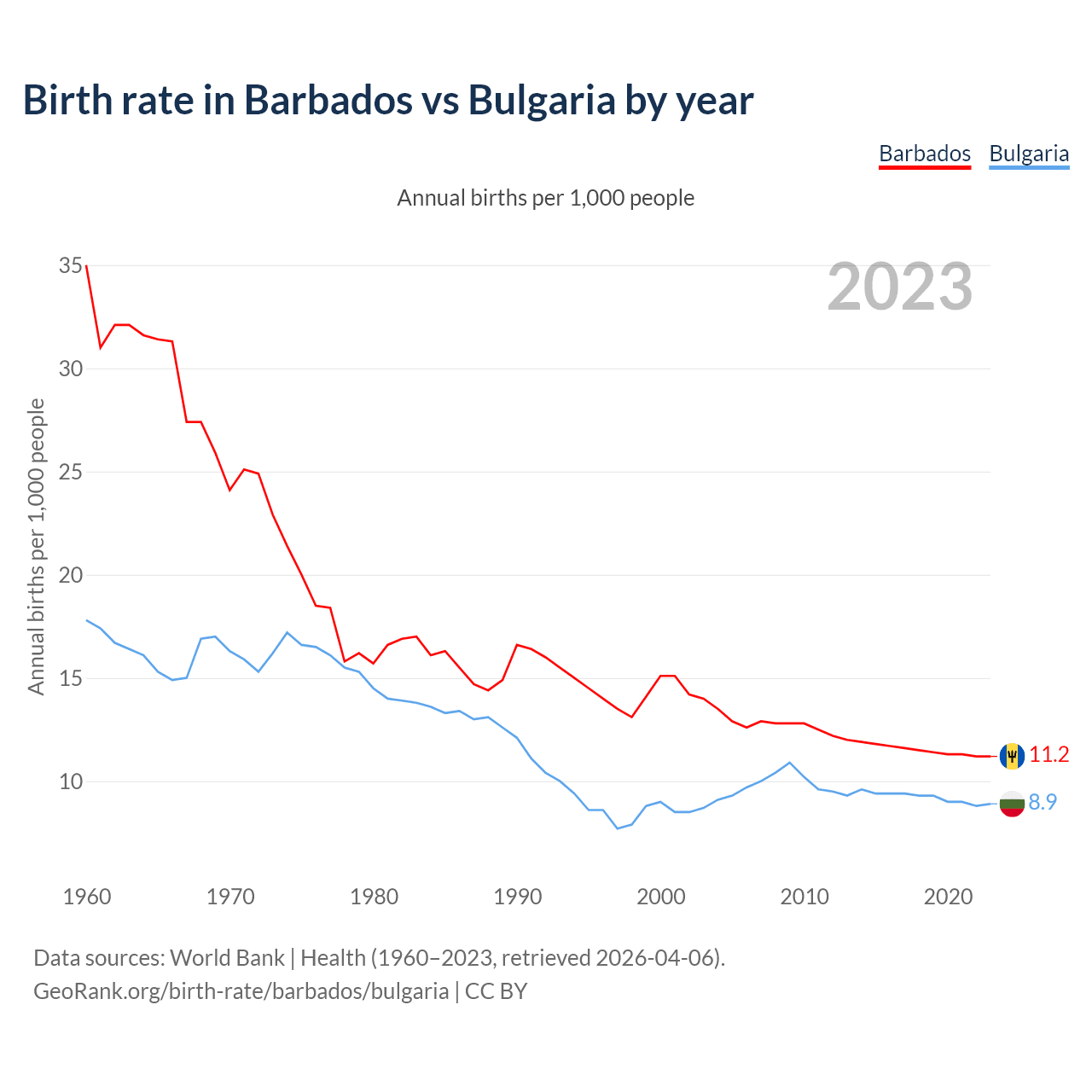 GeoRank.org/birth-rate/barbados/bulgaria | CC BY