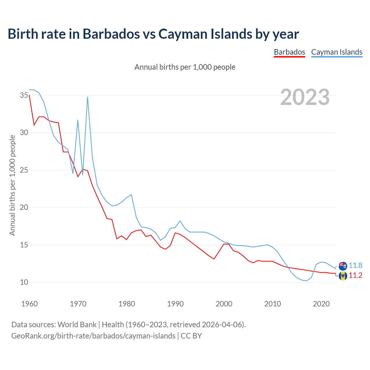 GeoRank.org/birth-rate/barbados/cayman-islands | CC BY