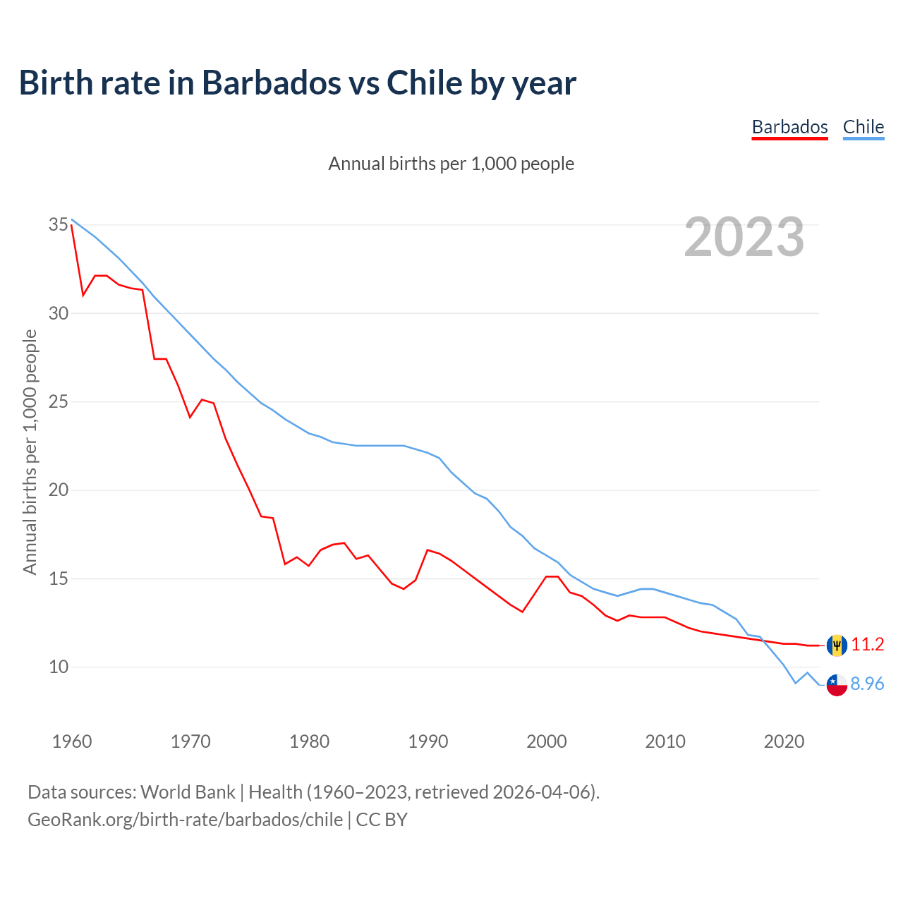 GeoRank.org/birth-rate/barbados/chile | CC BY