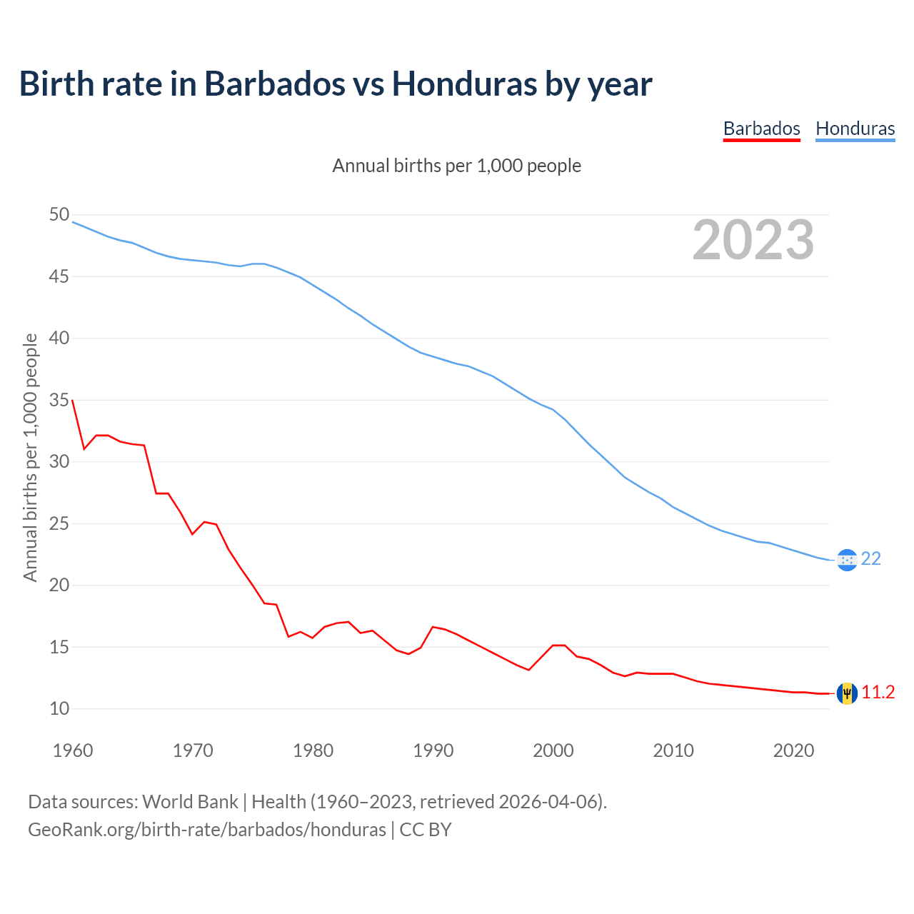 GeoRank.org/birth-rate/barbados/honduras | CC BY