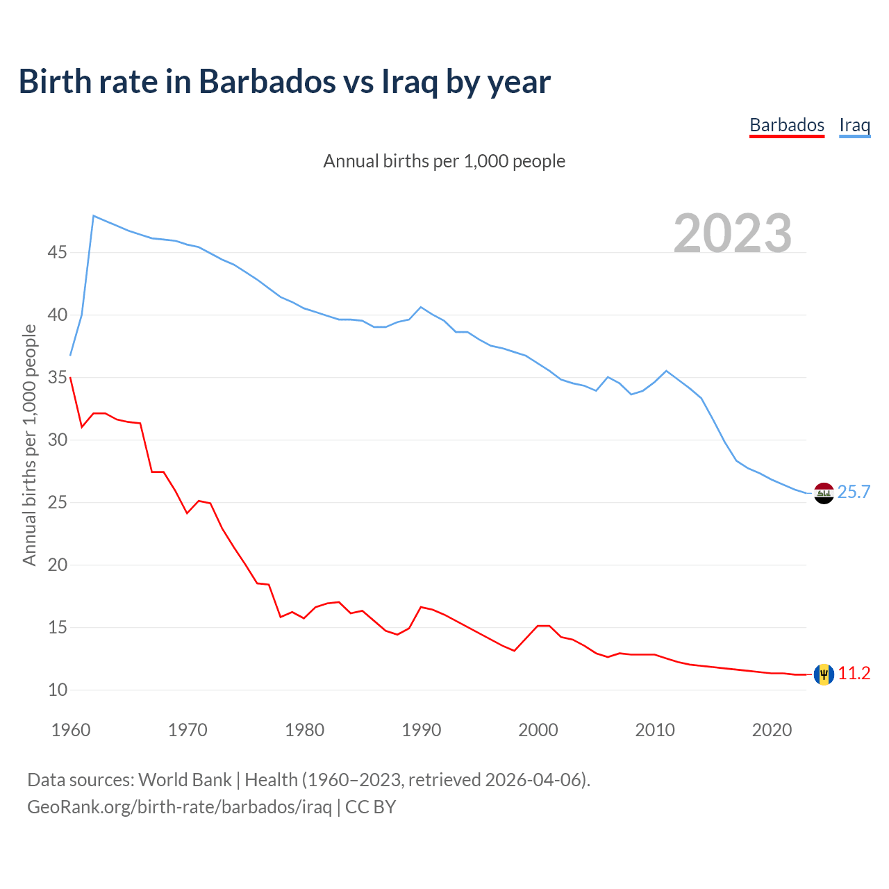 GeoRank.org/birth-rate/barbados/iraq | CC BY