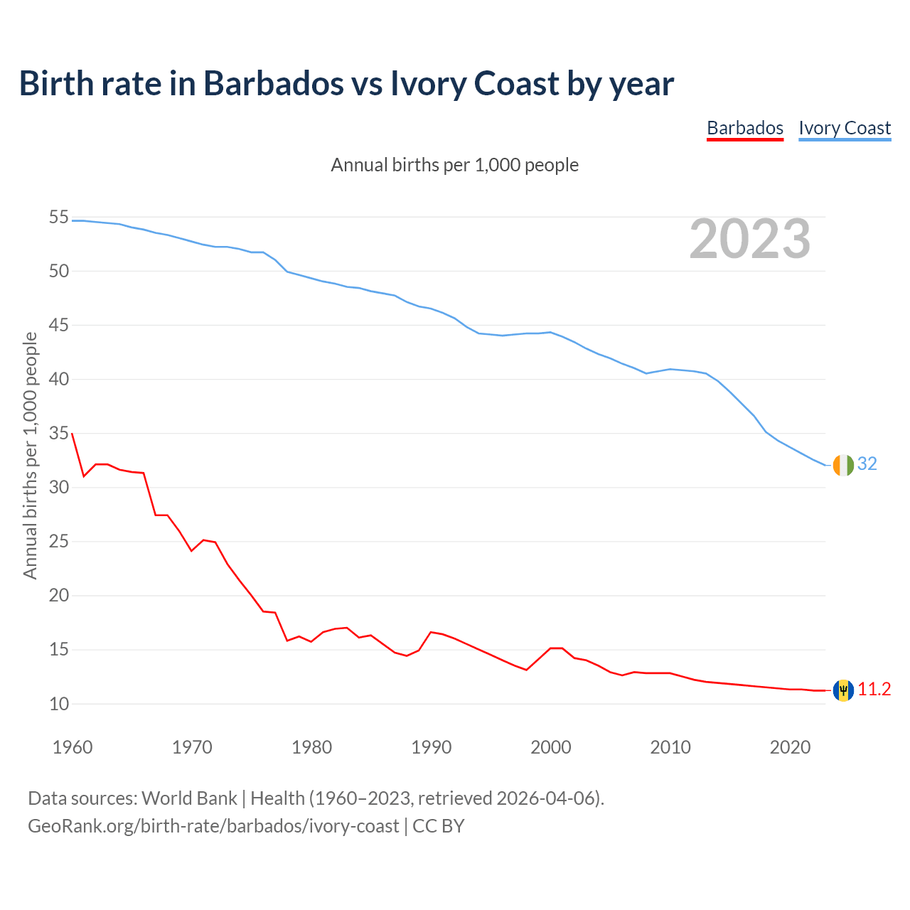 GeoRank.org/birth-rate/barbados/ivory-coast | CC BY