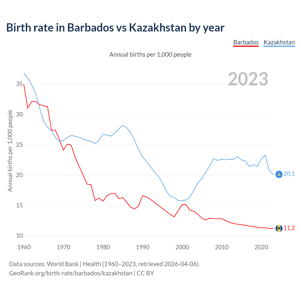 GeoRank.org/birth-rate/barbados/kazakhstan | CC BY
