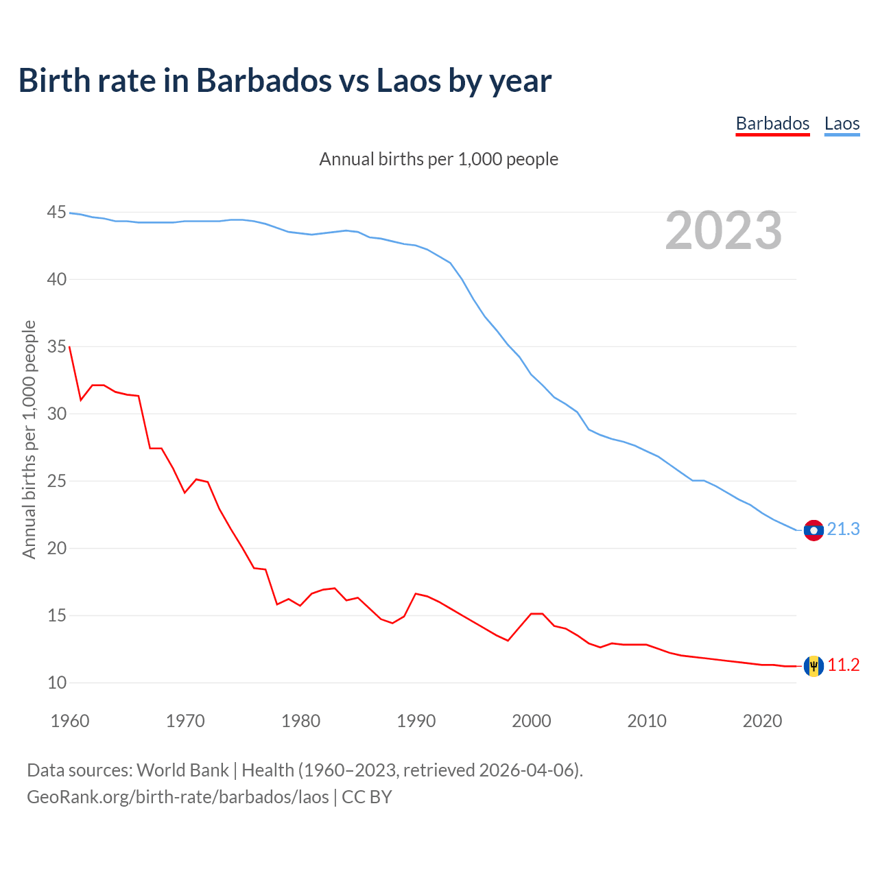 GeoRank.org/birth-rate/barbados/laos | CC BY