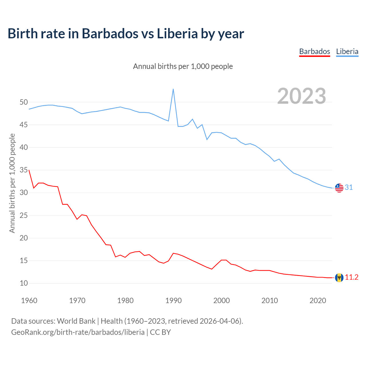 GeoRank.org/birth-rate/barbados/liberia | CC BY