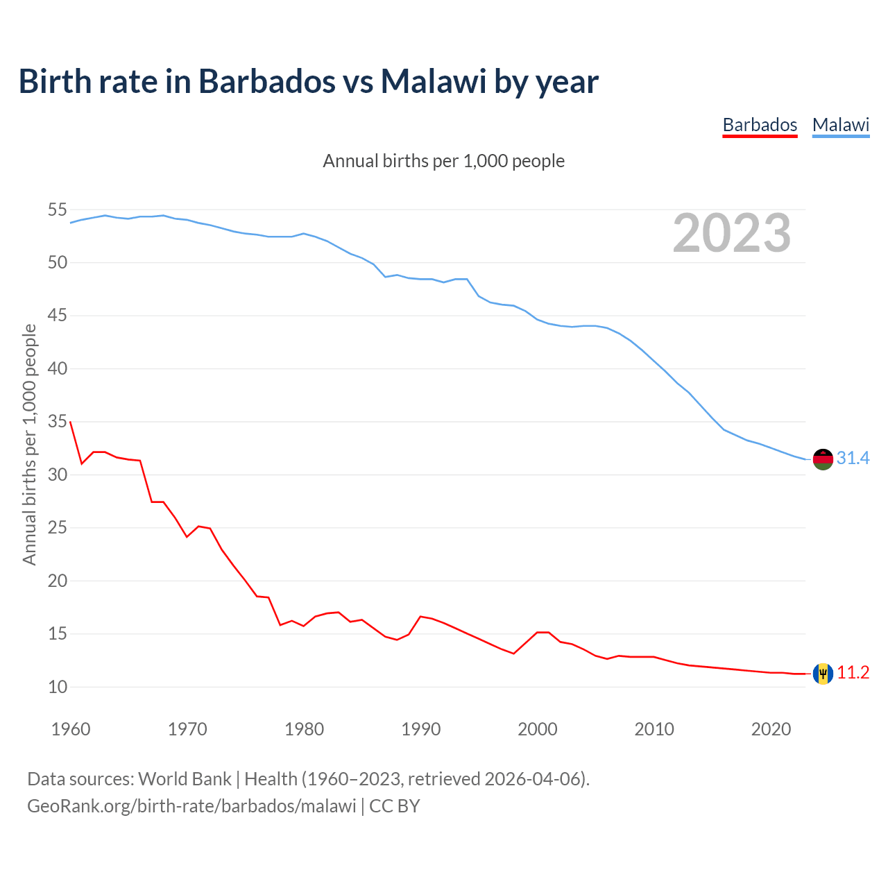 GeoRank.org/birth-rate/barbados/malawi | CC BY