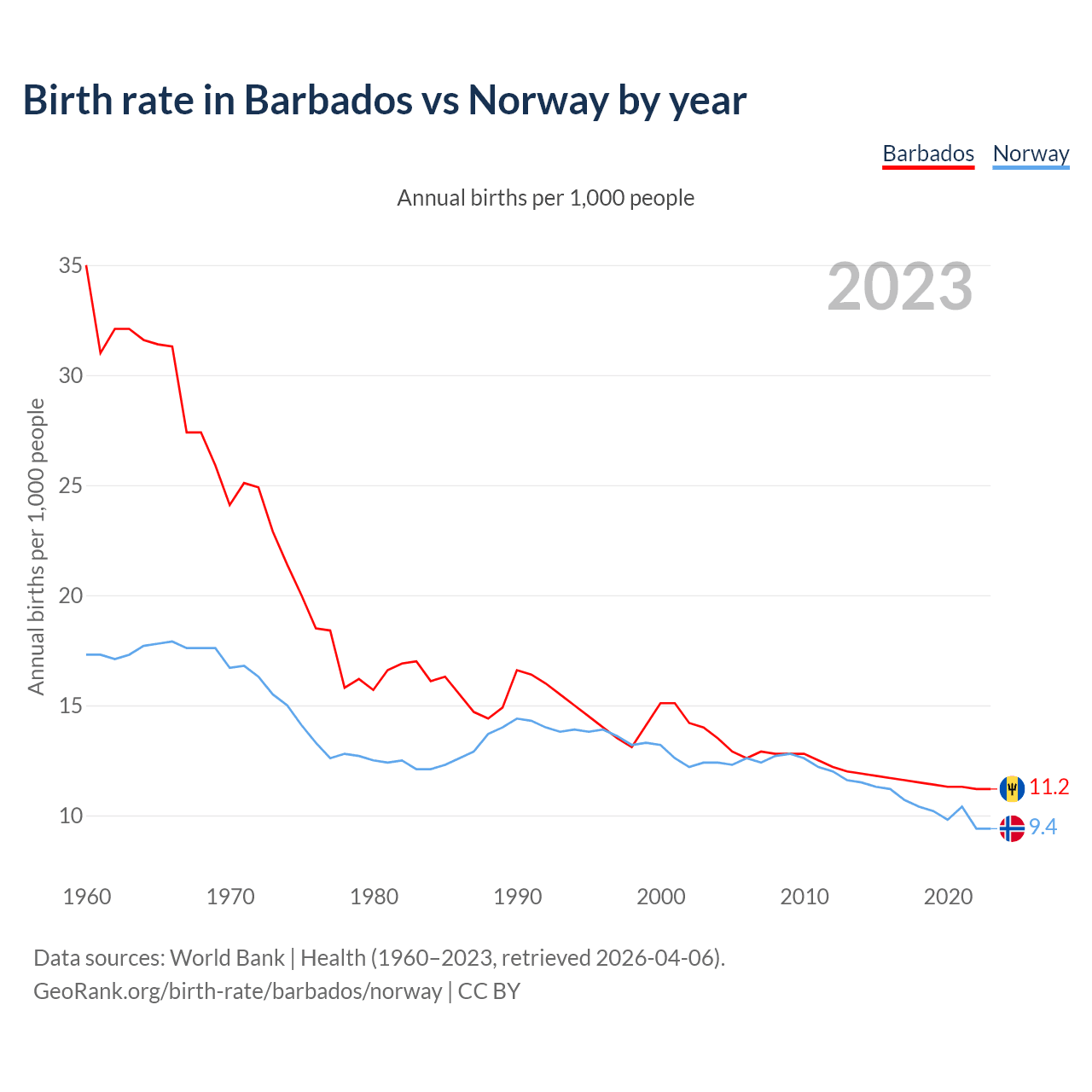 GeoRank.org/birth-rate/barbados/norway | CC BY