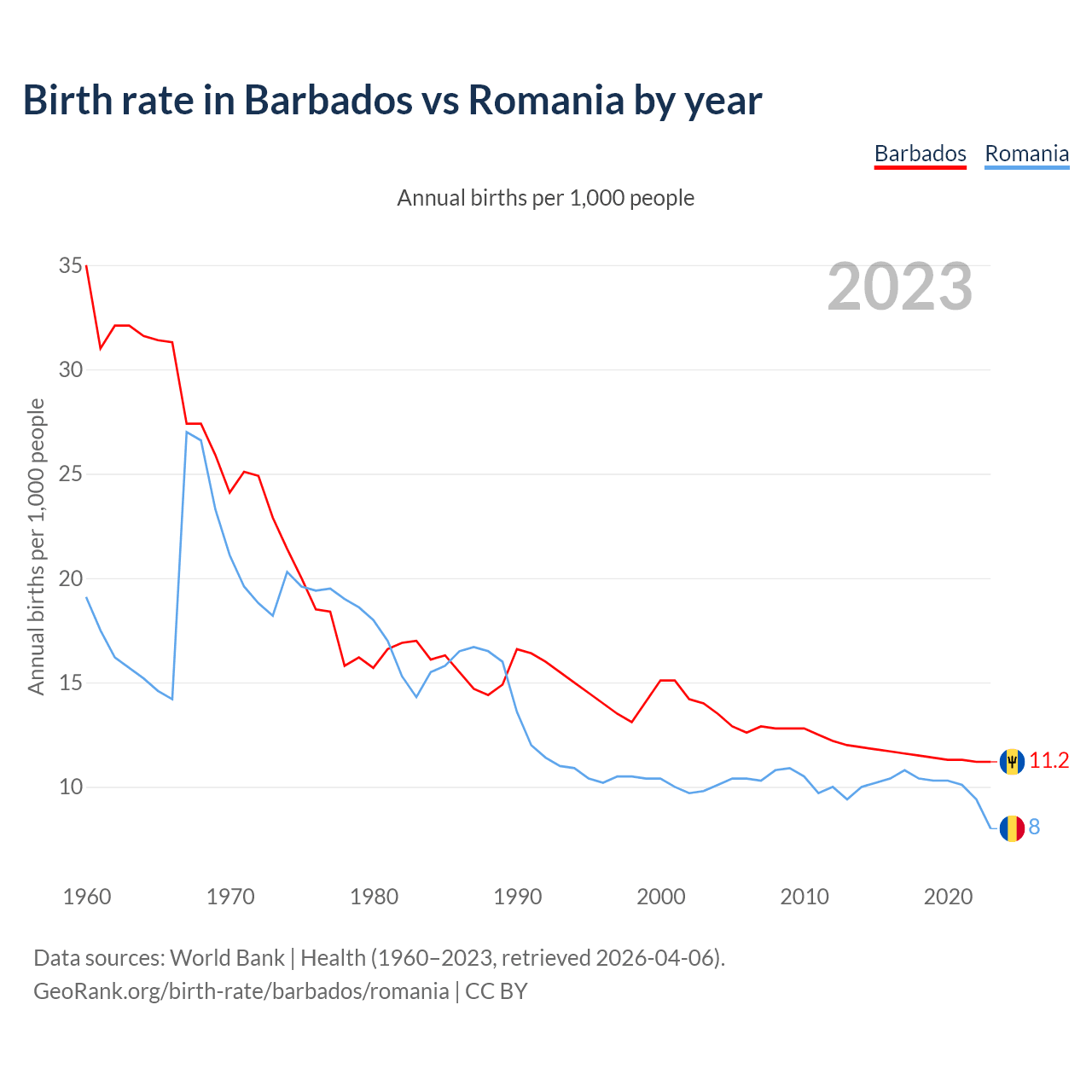 GeoRank.org/birth-rate/barbados/romania | CC BY