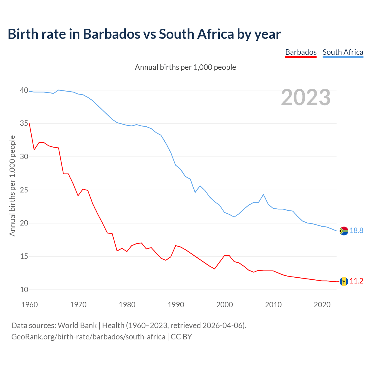 GeoRank.org/birth-rate/barbados/south-africa | CC BY